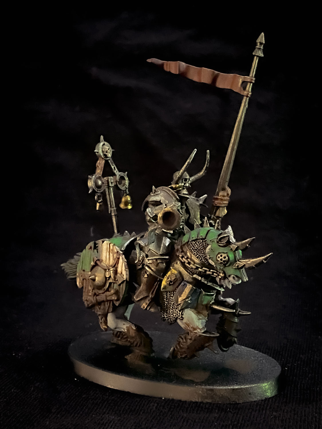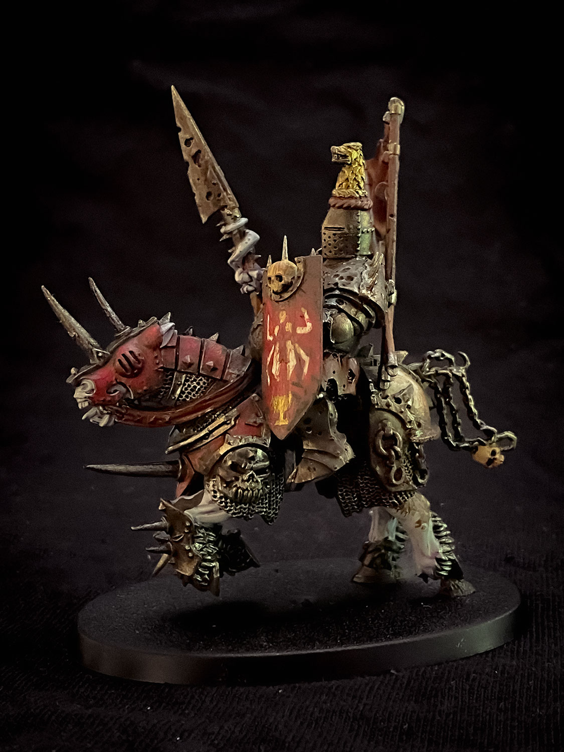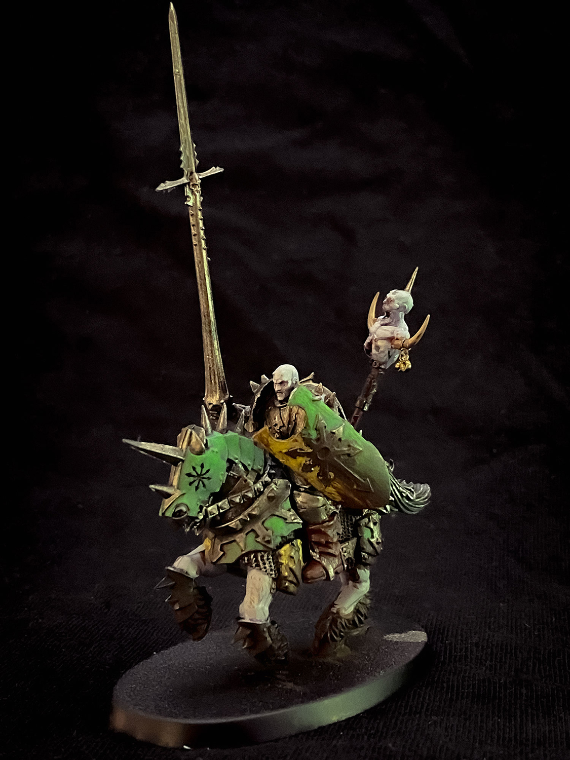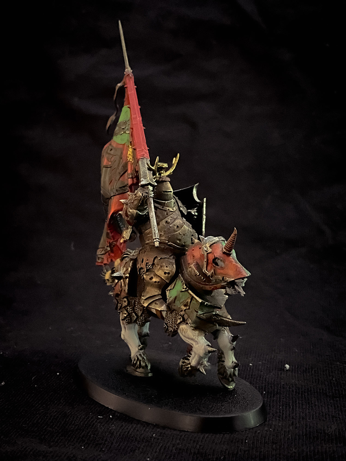 The concept for all of my Nurgle units is corrupted Bretonnians who were deceived and drank from the wrong grail. I’ll write a proper lore post for them later. They’re a heavy work in progress. Basically only the armor plates are done and everything else is blocked out in base colors.