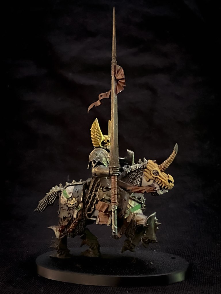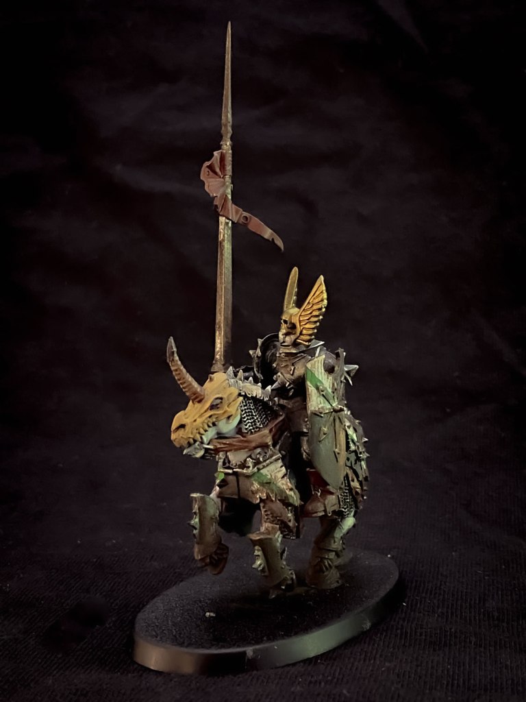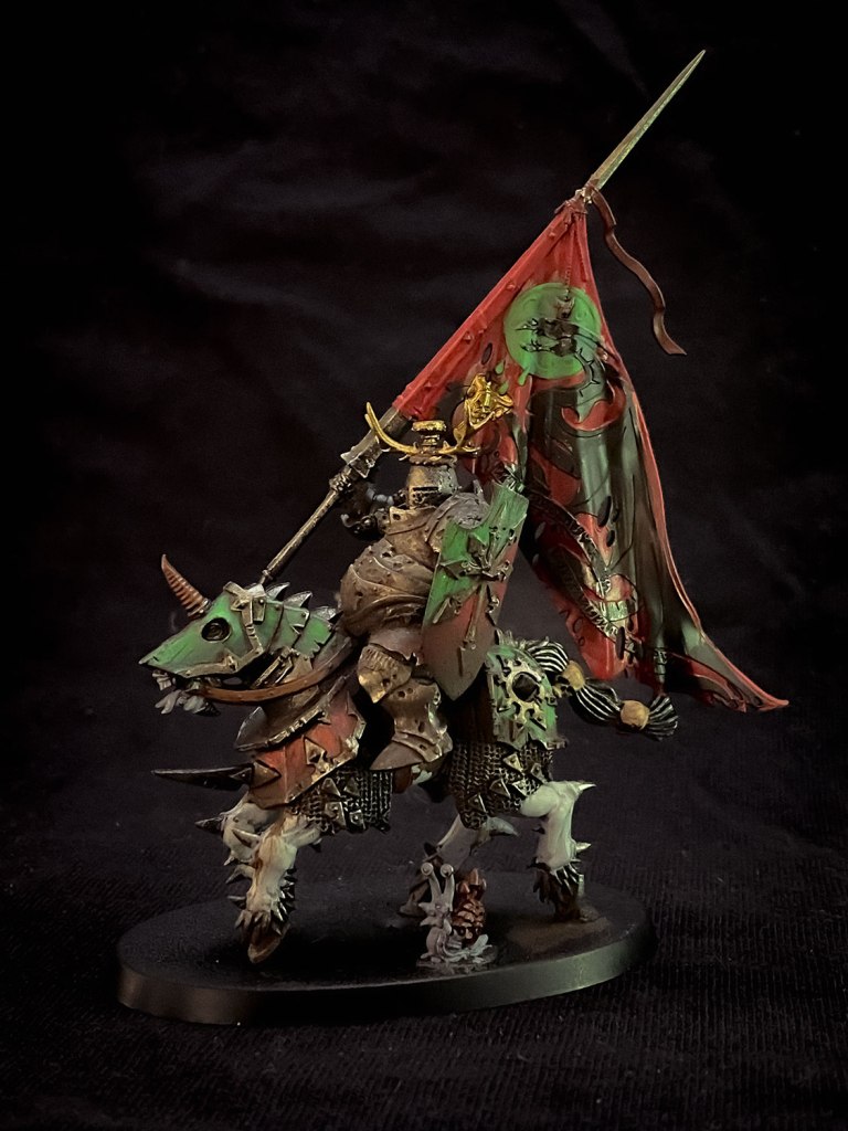 The concept for all of my Nurgle units is corrupted Bretonnians who were deceived and drank from the wrong grail. I’ll write a proper lore post for them later. They’re a heavy work in progress. Basically only the armor plates are done and everything else is blocked out in base colors.