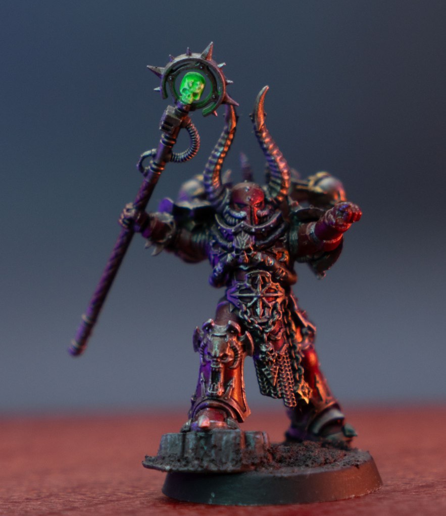 So far I mostly just have HQ units. Here’s my Chaos Lord in Terminator Armor who is the Coryphaus of my warhost. I don’t have names for the characters or their warhost yet.