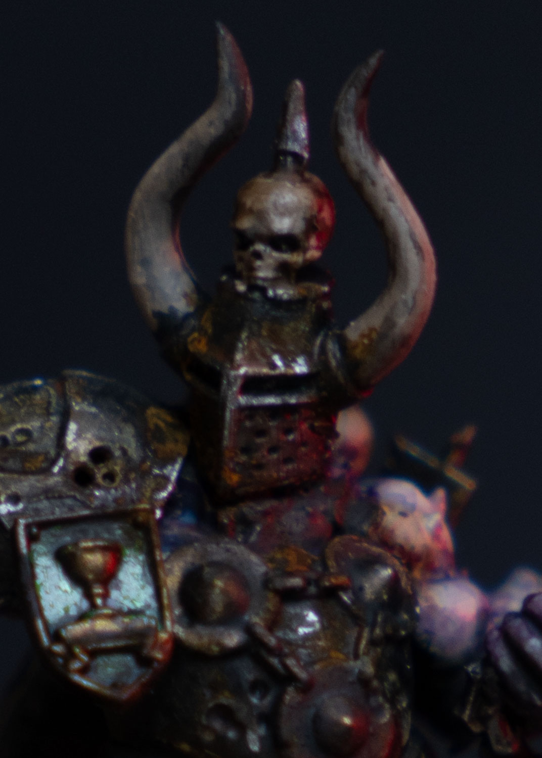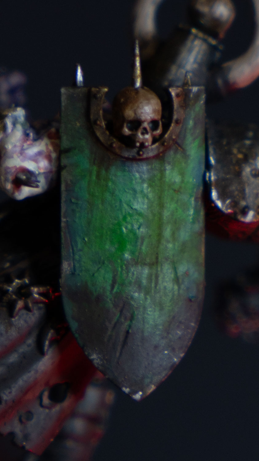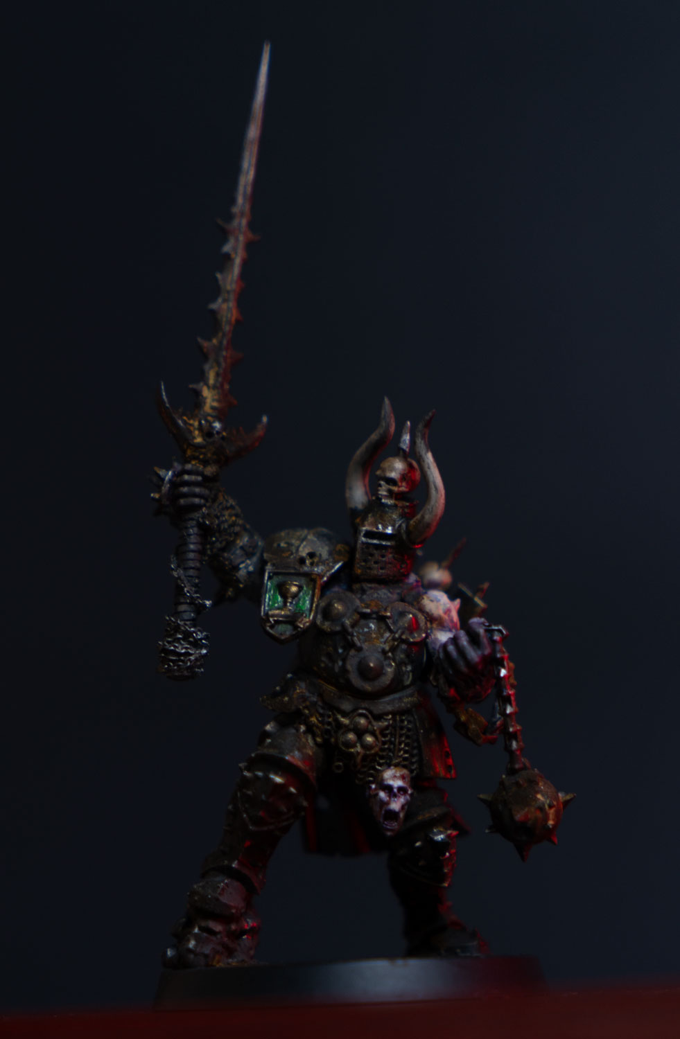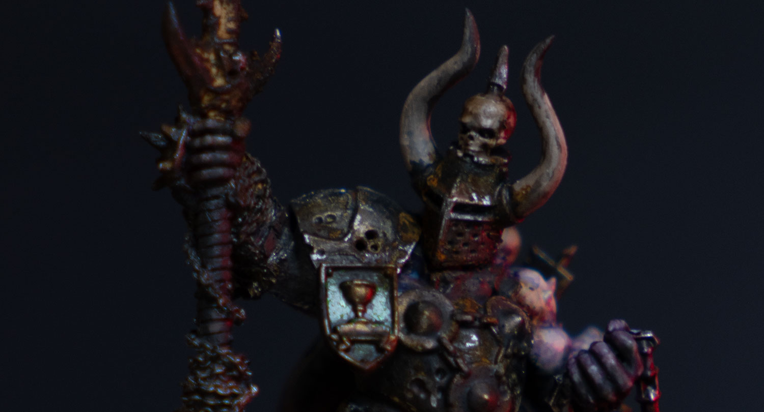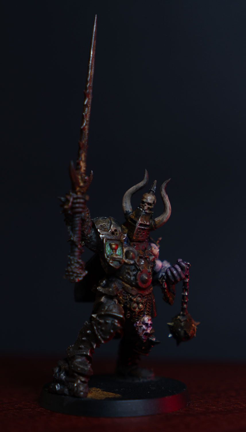 I finally painted up the kitbashed Chaos Lord with Mark of Nurgle that I posted earlier. Now he just needs his base decorated. I’m not sure if I’ll paint anything on the shield.