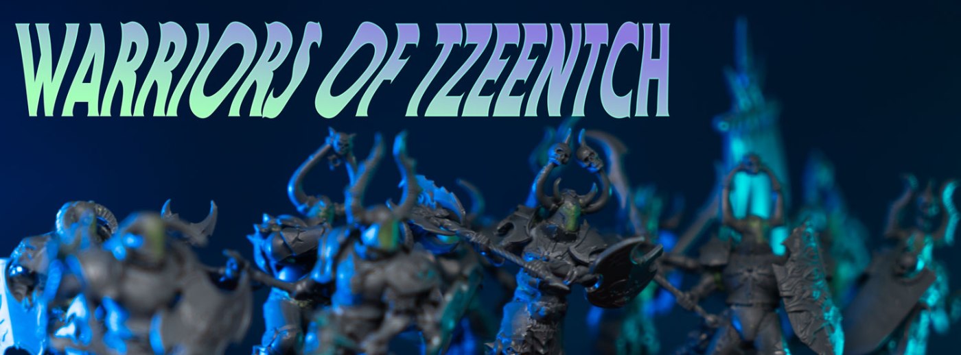 I realized that I have a ton of Tzeentch stuff in the works right now so it might as well be Tzeentch week! Yesterday I showed off my kitbashed unit of Forsaken. Those weren’t originally intended to have the Mark of Tzeentch, but when I made these warriors, I knew I wanted a beautiful colorshift paint scheme for their armor plates. I also knew I wanted unsettling pallid skin that shifts to black at the finger tips. So I used that unit of Forsaken as practice for these warriors. So imagine these guys painted up like my forsaken.