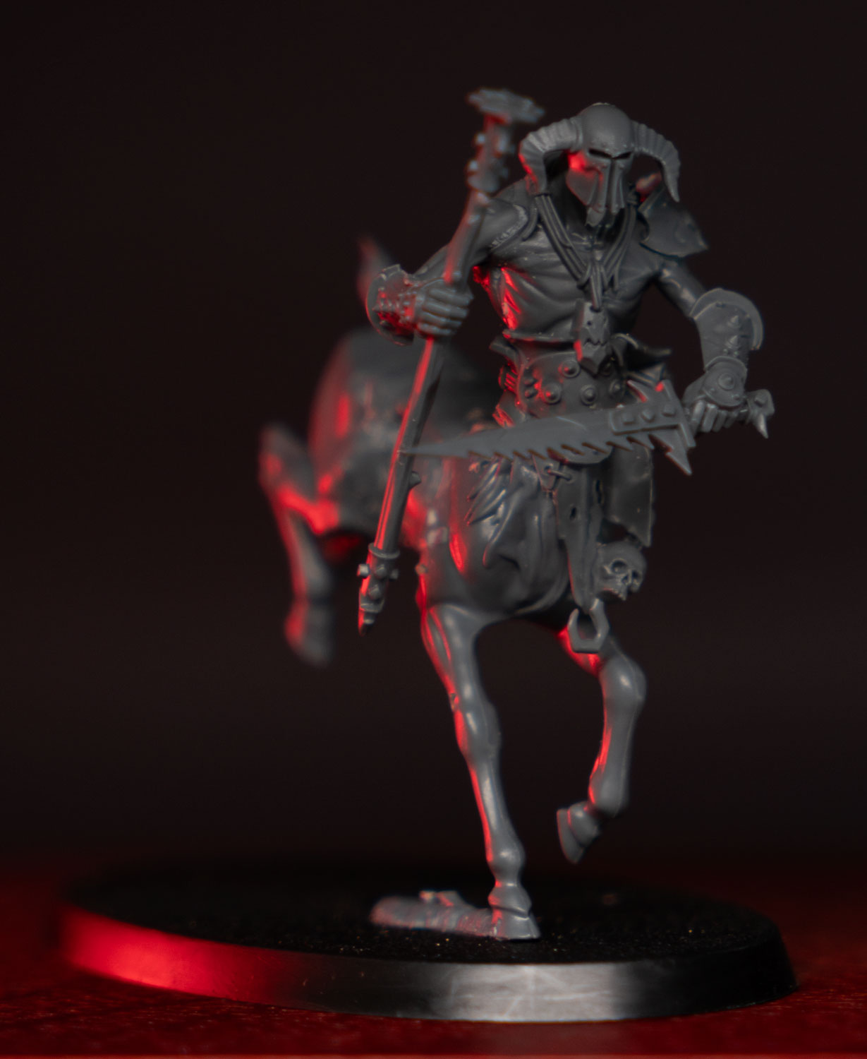 Today’s WIP is my marauder horsemen. I’m not sure if I want to give them shields or javelins in their offhand which is why they’re unfinished. For the background on these guys, check out the lore post for my chaos army here. But quick summary, they’re from the Tong tribe which lives pretty close to the polar gates and so are mutated by the chaos energies. The Tong aren’t really fleshed out in the official art so I had fun developing a unique style for them. I used some new Kruelboyz Ork bits to give them those semi-unhuman proportions. And their horse bodies are actually deer from some woodelves kit. I made them centaurs, again, because of the mutating energies of the polar gate. My marauders on foot will be based on Kruelboyz bodies as well, I think.