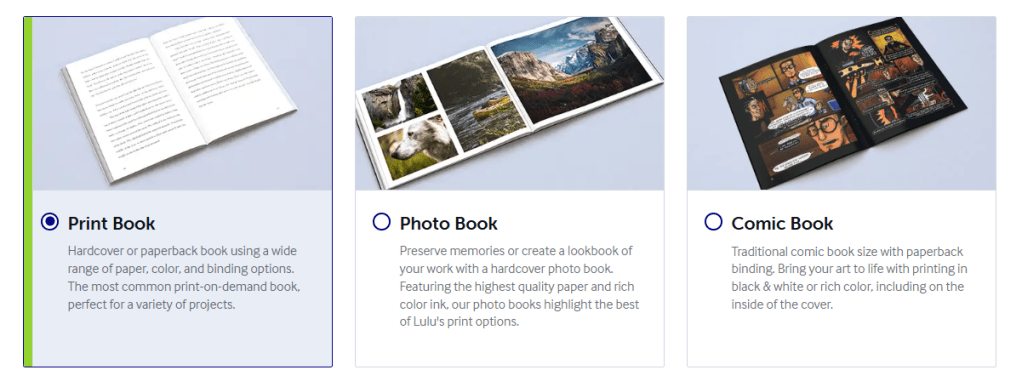 For product type I chose Print Book