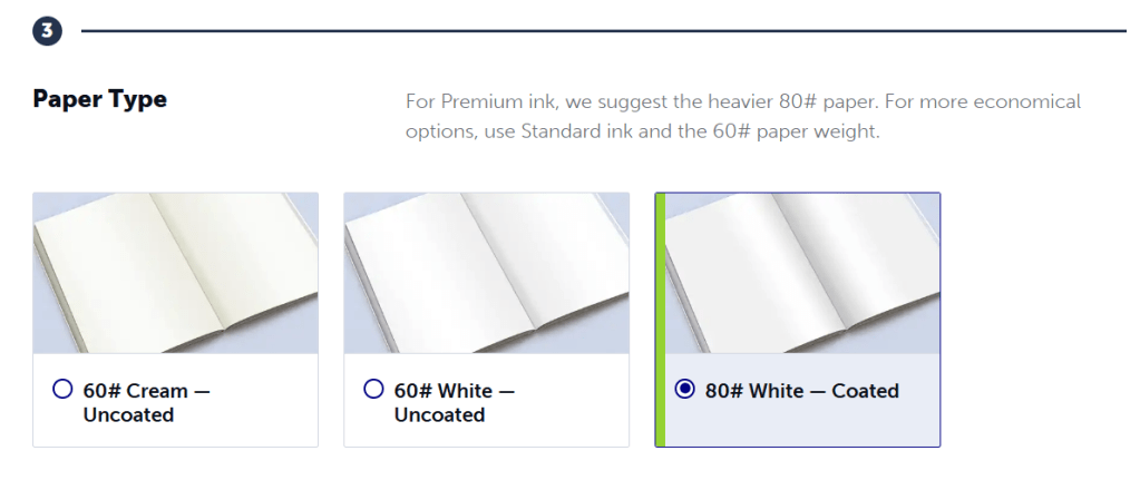 And paper type. I chose 80# White – Coated