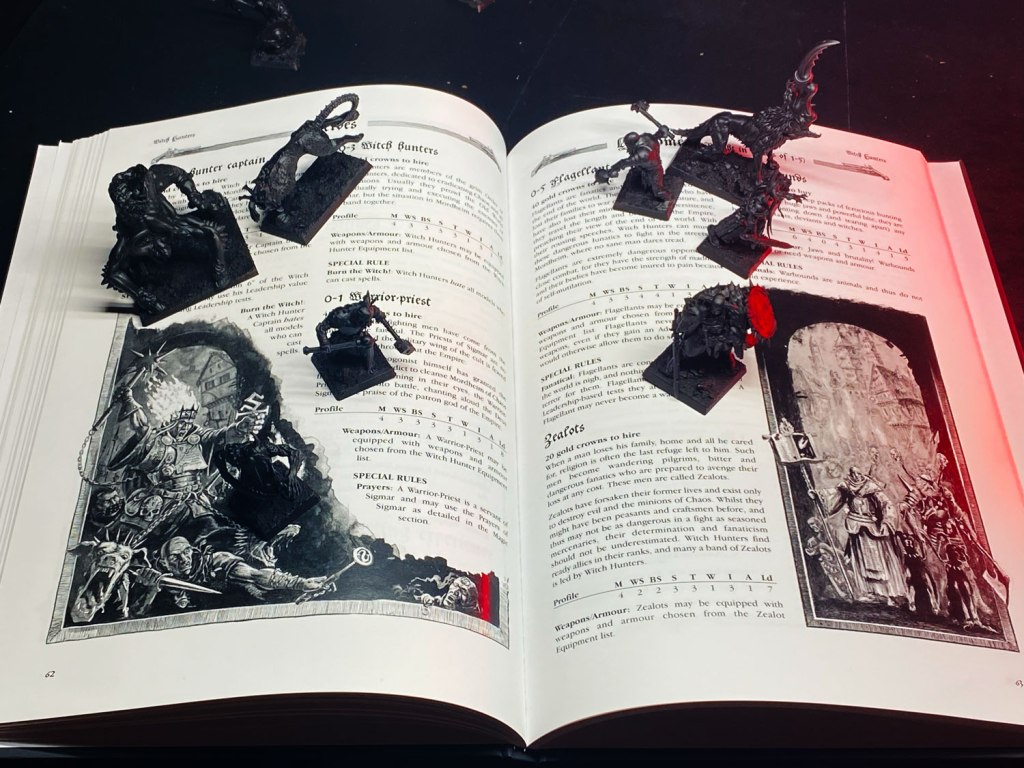 The book cover was designed by me. I’ve uploaded the full book cover, along with the front, back, and spine as separate files incase you want to customize them or make a thicker book. Click here to get them: Custom Mordheim Book Cover