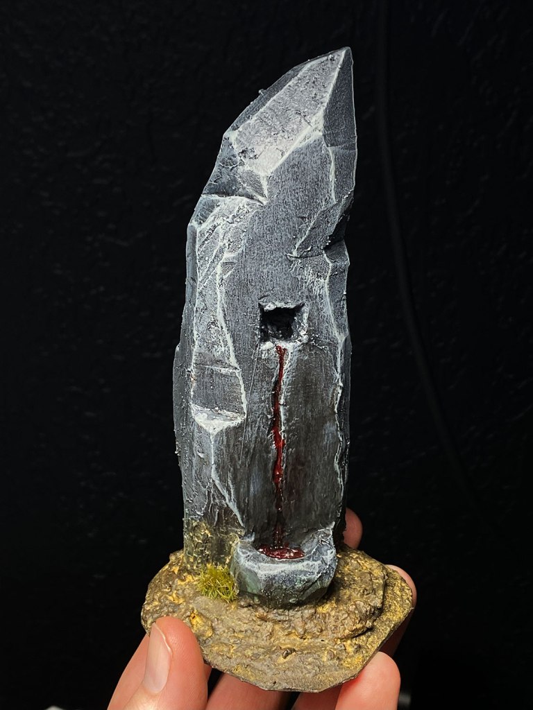 I left a lot of the cubbies empty so that my friends could literally leave tributes and trophies on the monument when they win games. They can be used as scatter terrain, or just as a nice display piece in their army cabinets. One of my friends who received the Nurgle stone, Summon Lesser Maker, even modified his to make it fit permanently on his massive Mordheim terrain board!